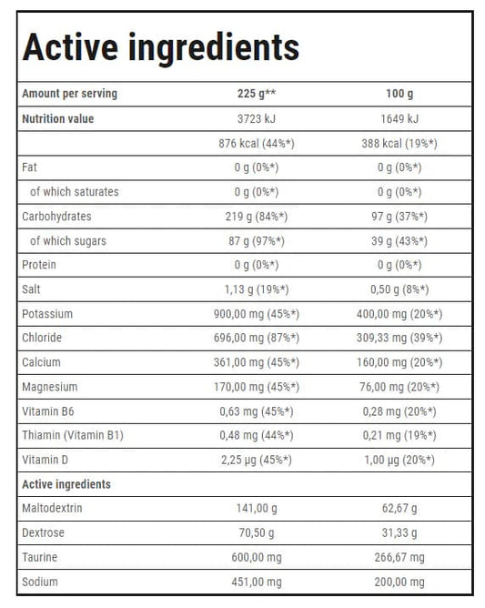 CARBO SPORT delivers a blend of fast-absorbing carbohydrates, electrolytes, and vitamins to fuel endurance and strength. Magnesium & B6 fight fatigue, vitamin D supports muscle function, and thiamine boosts energy metabolism. Stay powered up for high-intensity training!